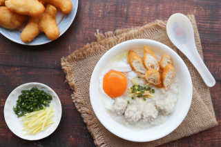 A traditional style of breakfast in Thailand may consist of a bowl of congee (or rice soup/porridge) with fried chinese donut. Other choices may include a bowl of warm soy milk with condiments like tapioca, mung bean or grains; sticky rice with bbq pork skewer; a glass of Thai style coffee/tea.