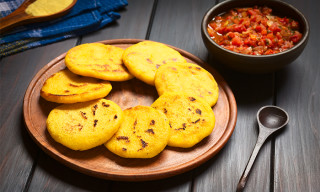 The Colombia consists of an arepa, a bun baked from boiled cornmeal dough. The arepa is usually topped with butter, egg, minced meat, jam or hogoa. Hogoa is a traditional herb sauce consisting of tomato, garlic and onions and is mainly eaten in South America.