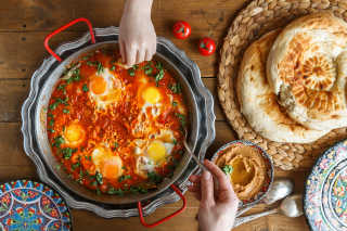 | What is Shashuka?: Shashuka is a fusion dish to have in the morning and/or lunch. The eggs are poached in a tomato sauce mixed with various spices and normally cooked in a pan. |